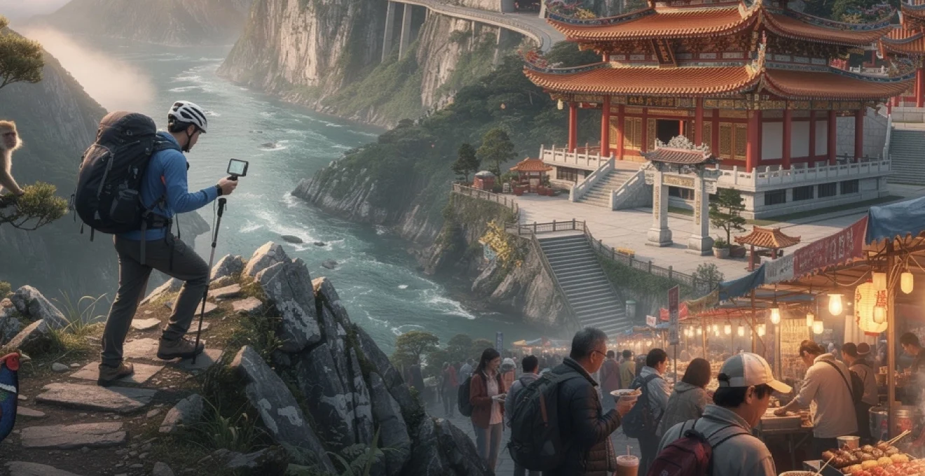 Nichée entre le détroit de Formose et l’océan Pacifique, Taïwan révèle un concentré d’Asie où se mélangent traditions millénaires et modernité effervescente. Cette île de 36 000 km² fascine par sa diversité géographique exceptionnelle, depuis les sommets culminant à près de 4 000 mètres jusqu’aux sources thermales volcaniques, en passant par des gorges de marbre spectaculaires. L’archipel abrite également un patrimoine culturel d’une richesse remarquable, où temples bouddhistes et sanctuaires taoïstes côtoient des villages hakkas préservés et des communautés aborigènes aux traditions ancestrales. Cette mosaïque culturelle s’exprime particulièrement dans l’effervescence nocturne des marchés de rue, véritables théâtres de la gastronomie taïwanaise où se perpétuent des saveurs authentiques transmises de génération en génération.